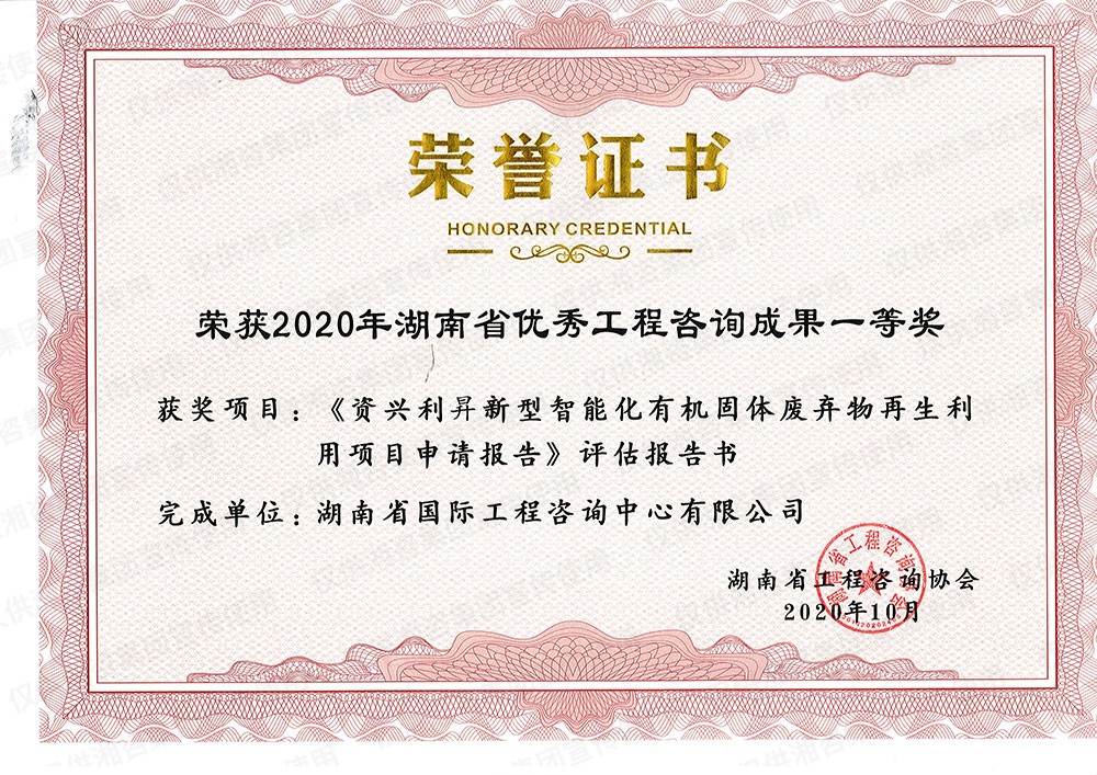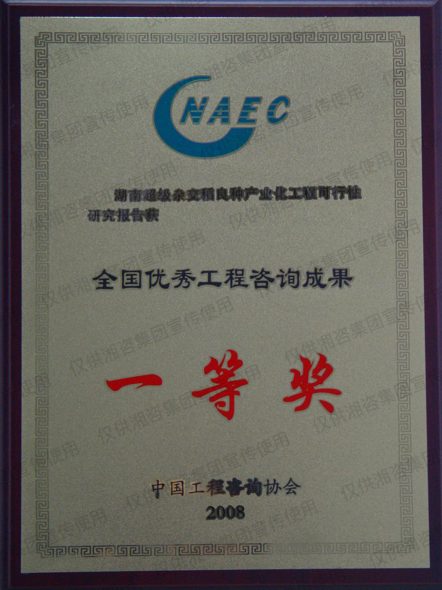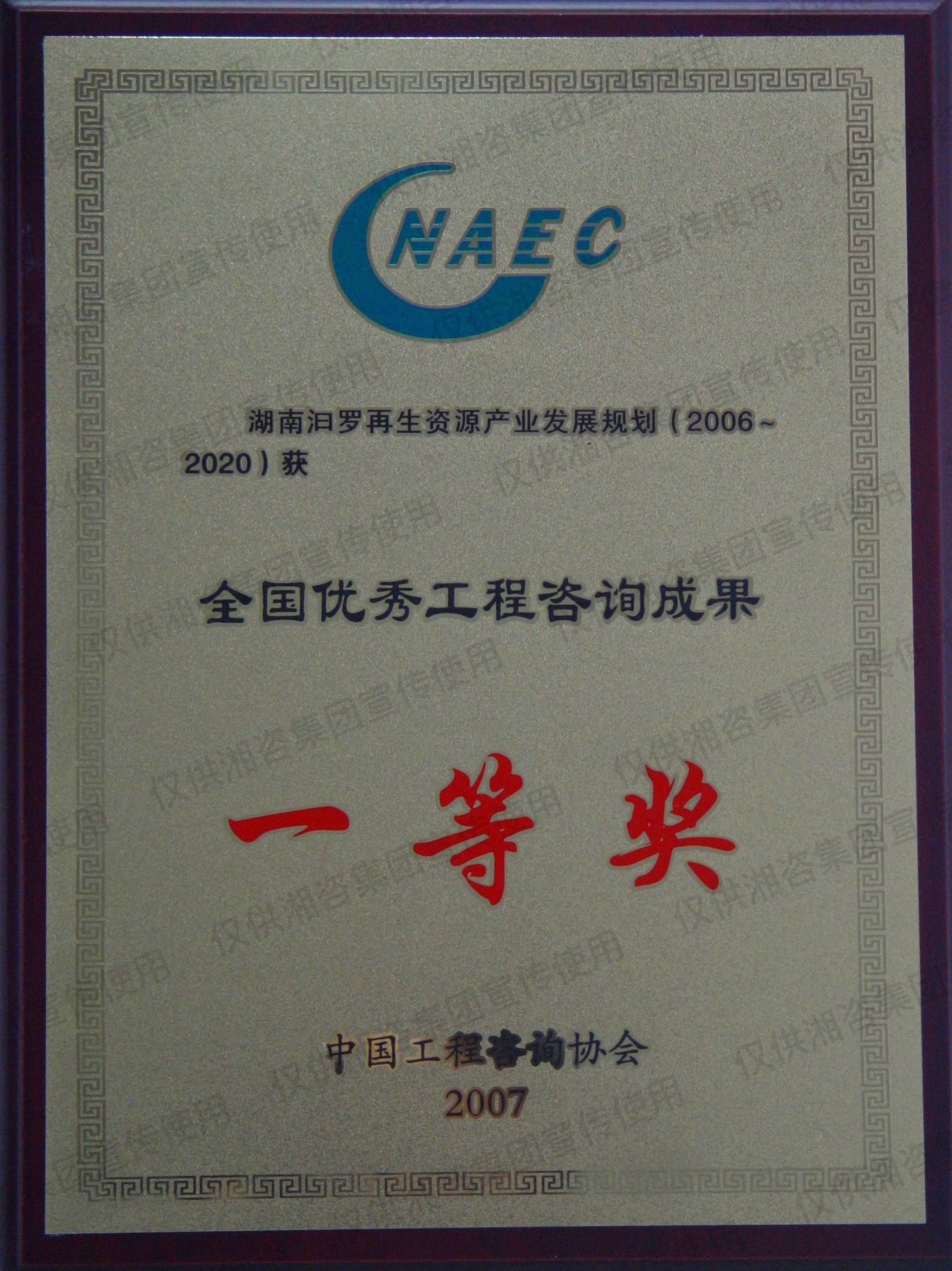 中國輕工業工程建設協會優秀工程咨詢成果一等獎