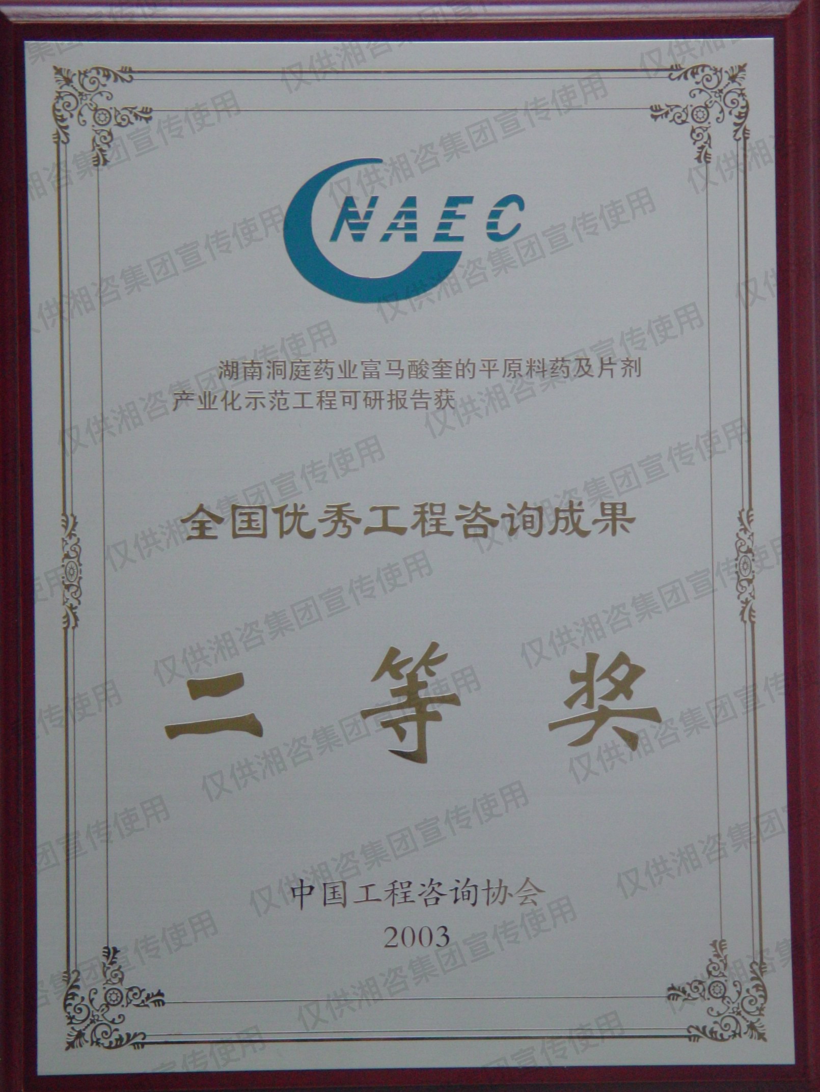 中國輕工業勘察設計協會優秀工程勘察二等獎