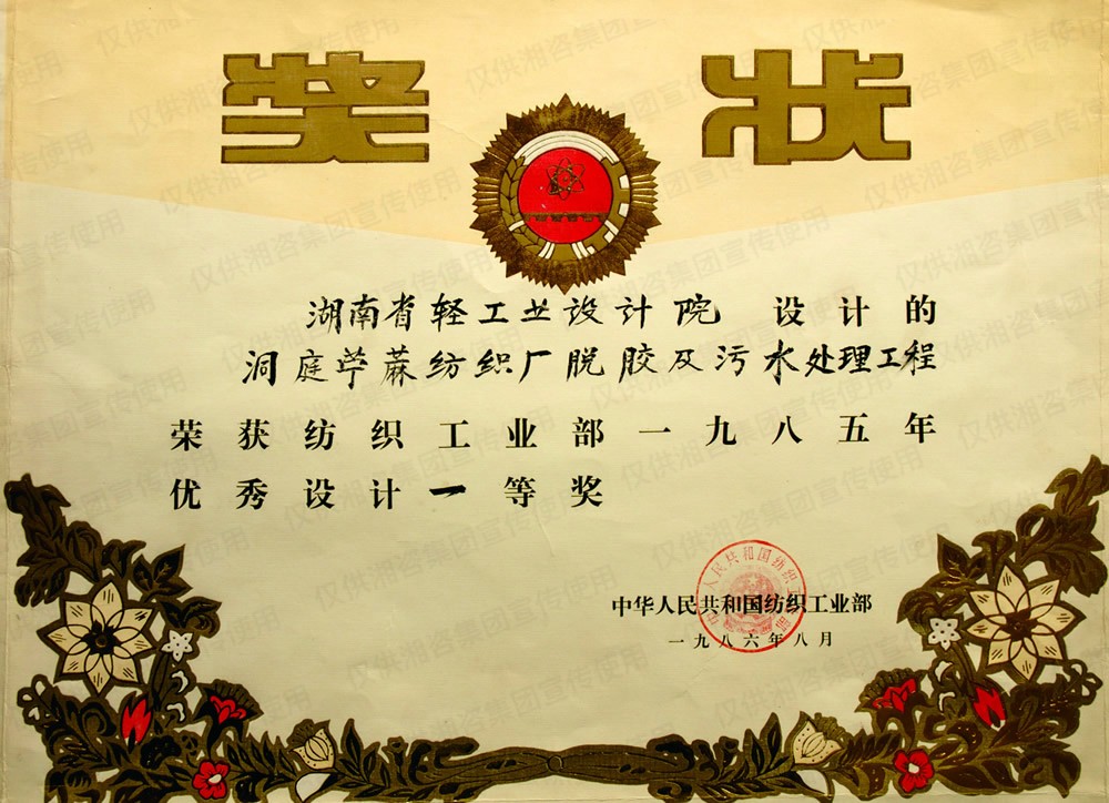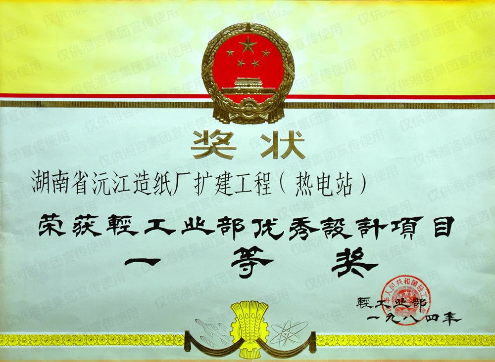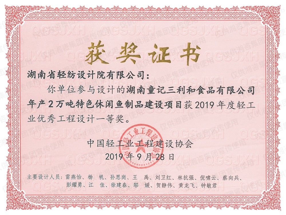 中國輕工業工程建設協會輕工業優秀工程設計一等獎