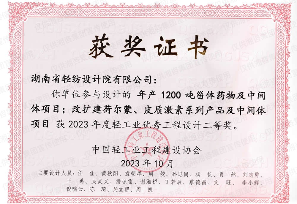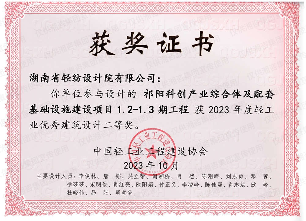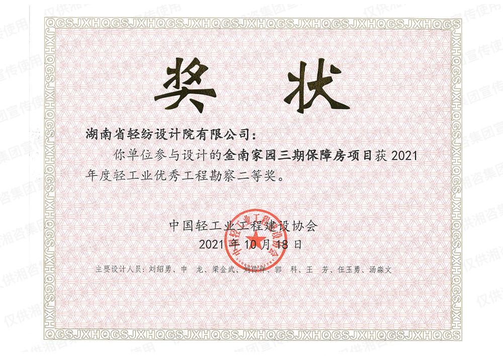 中國輕工業工程建設協會優秀建筑設計二等獎