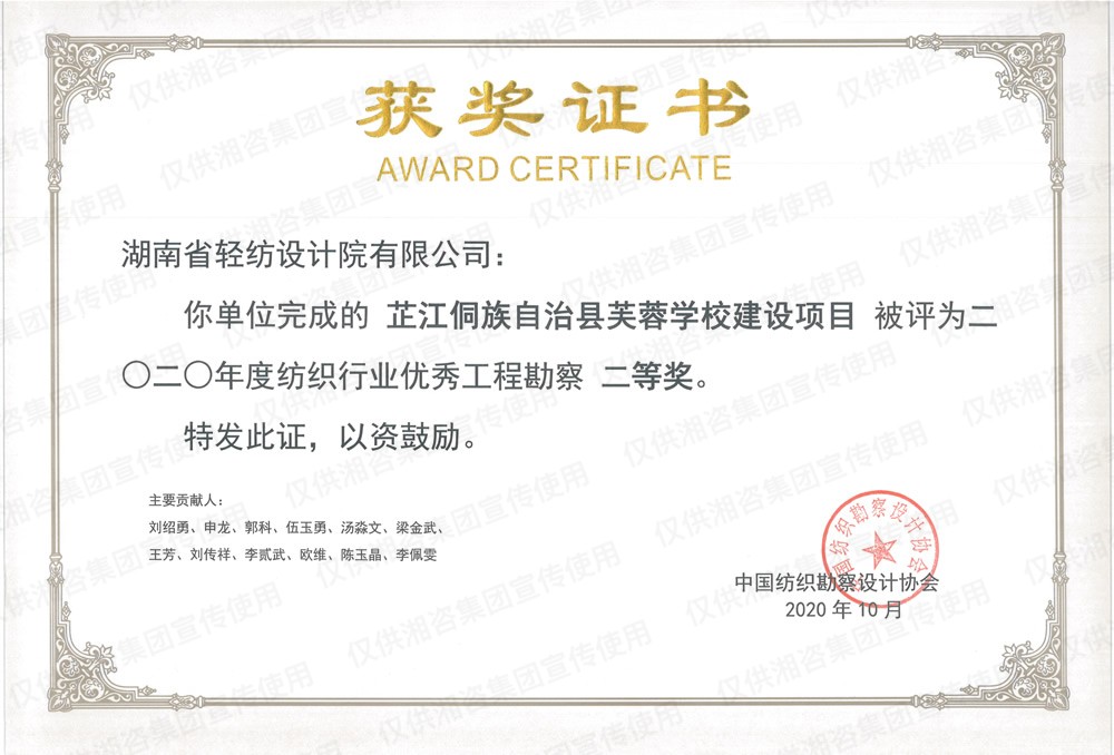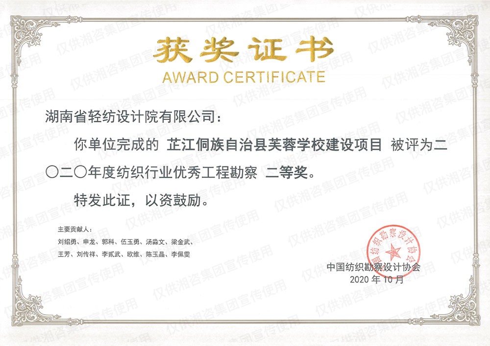 中國紡織勘察設計協會優秀工程勘察二等獎