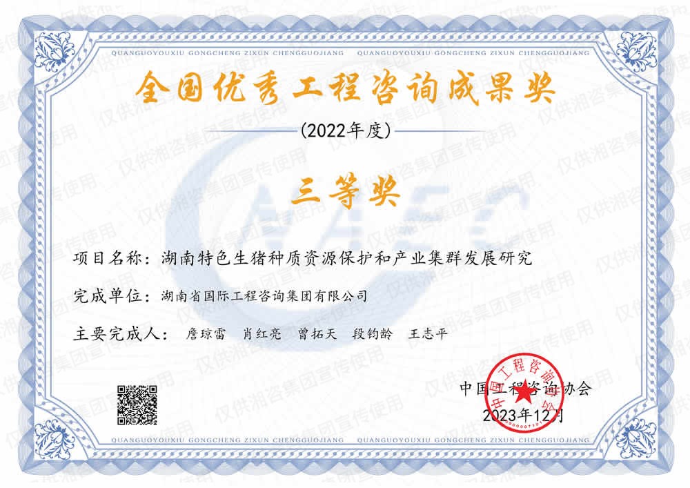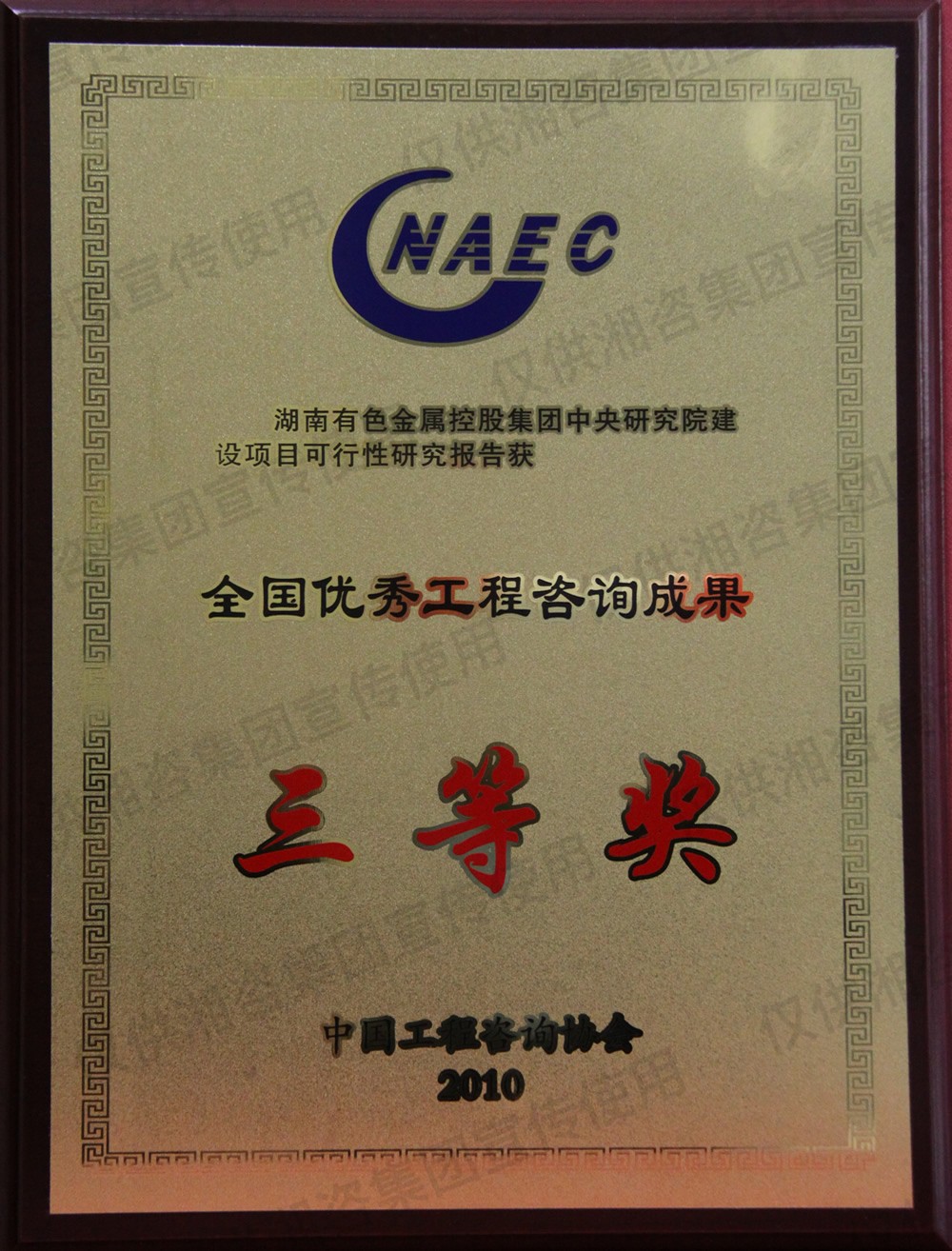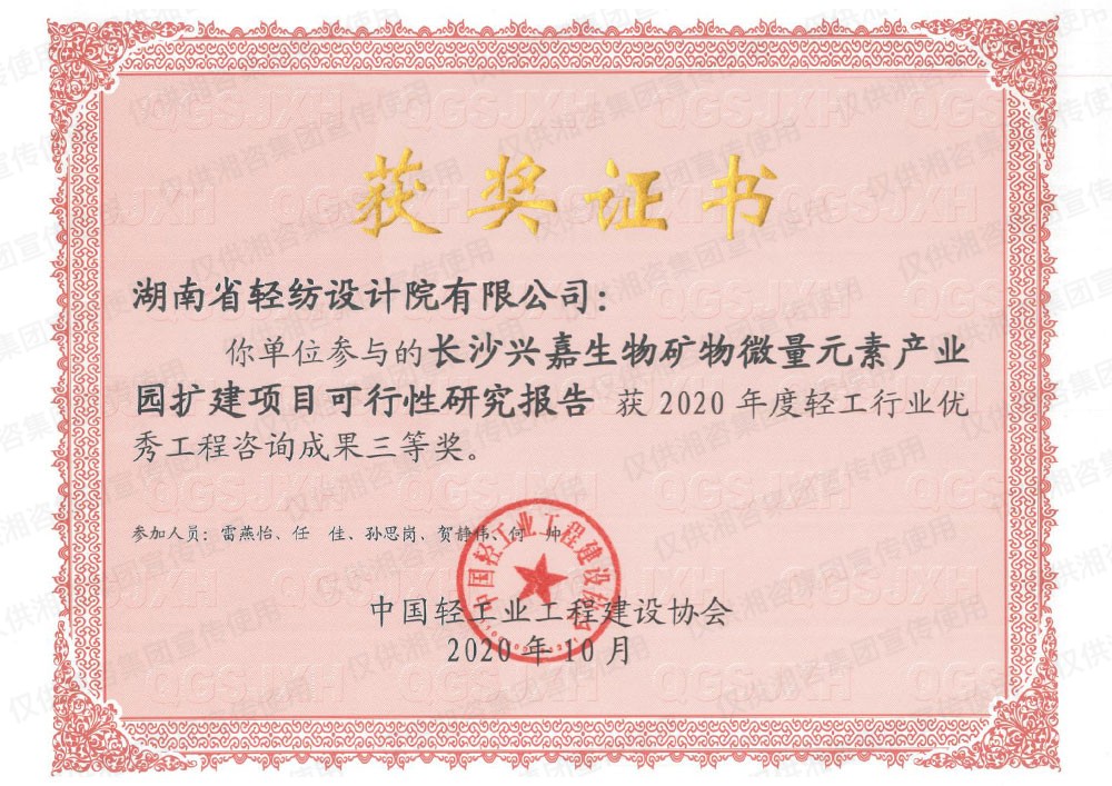 中國輕工業工程建設協會優秀工程咨詢成果三等獎