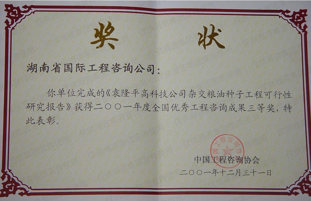 湖南省勘察設計協會優秀工程勘察設計二等獎