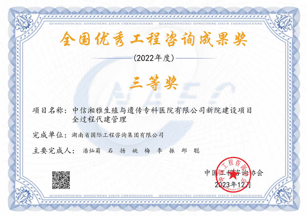 中信湘雅生殖與遺傳專科醫院有限公司新院建設項目全過程代建管理