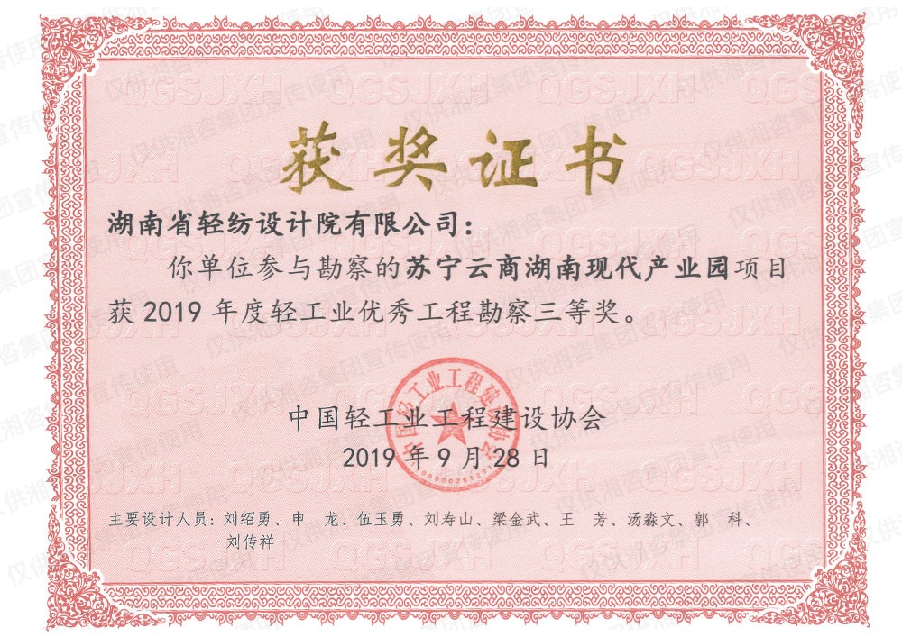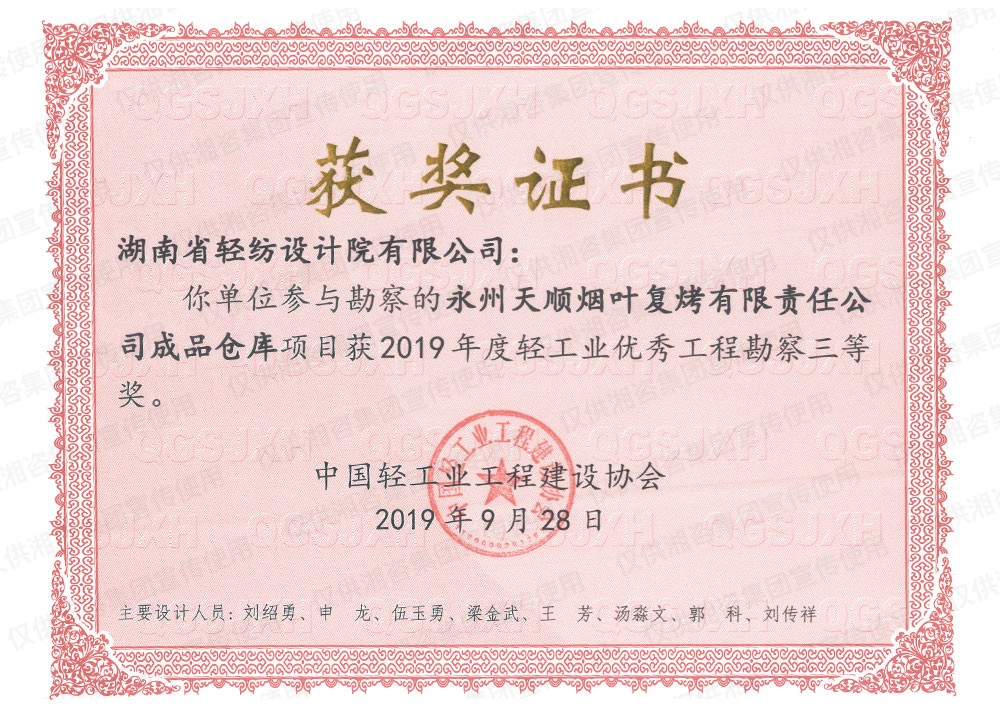 中國輕工業工程建設協會優秀工程勘察三等獎