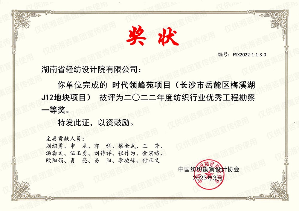 中國紡織勘察設計協會優秀工程勘察一等獎