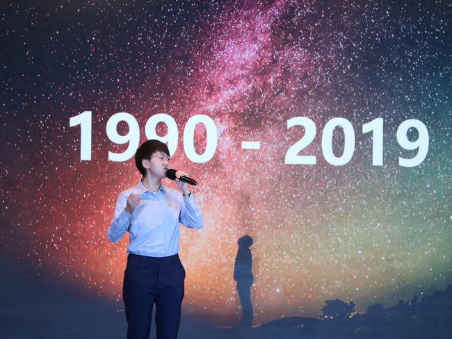 劉曉燁以題為“請回答1990”代表公司參加“青年說”演講。她從自身經歷出發,用生動的語言、鮮活的事例和飽滿的熱情,講述了1990-2019年來發生在身邊和祖國的大小事,這些事情如一幕幕電影畫面,描繪著一名90年代的青年成長的故事,帶著觀眾回到過去,看到現在,展望未來。