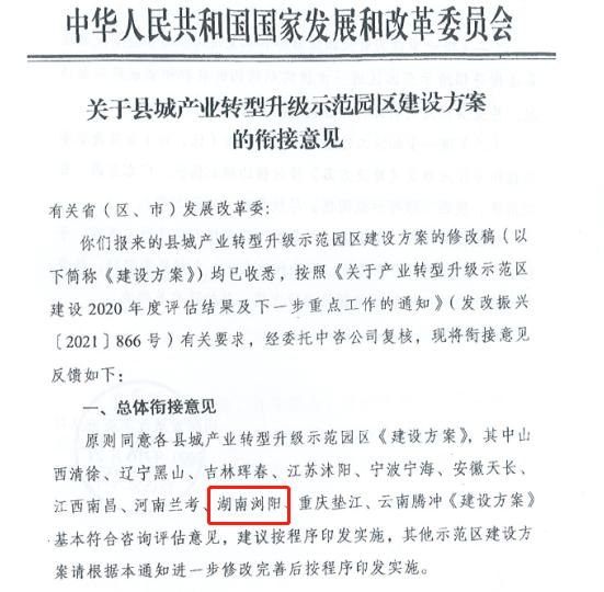 根據(jù)《國家發(fā)展改革委 科學技術(shù)部 工業(yè)和信息化部 自然資源部關(guān)于產(chǎn)業(yè)轉(zhuǎn)型升級示范區(qū)建設(shè)2020年度評估結(jié)果及下一步重點工作的通知》(發(fā)改振興〔2021〕866號),瀏陽經(jīng)開區(qū)成功入選國家級縣城產(chǎn)業(yè)轉(zhuǎn)型升級示范園區(qū)。《方案》被省發(fā)展改革委、省科技廳、省工信廳和省自然資源廳聯(lián)合印發(fā)。